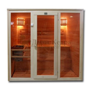 Это специально оборудованная готовая деревянная кабина для сухого и влажного парения. Электропечь нагревает пространство внутри и позволяет сбрызгивать камни водой, слегка увлажняя воздух. Такая процедура позволяет избежать перегрева. Сауна обшита снаружи и внутри кедровой вагонкой и имеет теплоизоляционный слой. Финская сауна с электропечью подойдет, как для домашнего использования, так и для коммерции. Доставляется в разборном виде щитами, собирается по инструкции с помощью шуруповёрта.