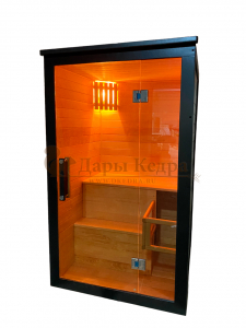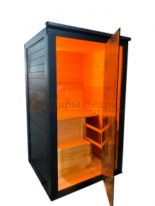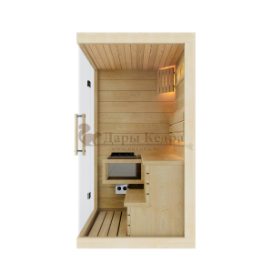 Это специально оборудованная готовая деревянная кабина для сухого и влажного парения. Электропечь нагревает пространство внутри и позволяет сбрызгивать камни водой, слегка увлажняя воздух. Такая процедура позволяет избежать перегрева. Каркас сауны выполнен из массива кедра, снаружи и внутри обшит липовой вагонкой сорта «Экстра» и имеет теплоизоляционный слой. Также двухуровневый полок идёт из кедра для обогащения внутри кабины полезными фитонцидами, а в сочетании с противовирусными свойствами липы сауна становится настоящим источником здоровья.