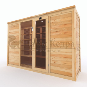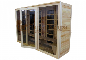 Это специально оборудованная кедровая кабина для прогрева тела человека сухим теплом. Воздух в таких парных не нагревается. Инфракрасные лучи воздействуют на тело, равномерно прогревая мышцы, суставы и органы. Карбоновые излучатели, встроенные в стены кабины, обладают мягким прогревом, что полностью исключает возможность ожога. Работает кабина за счет электричества. Пятиместная инфракрасная сауна с карбоновыми излучателями подходит для коммерции.